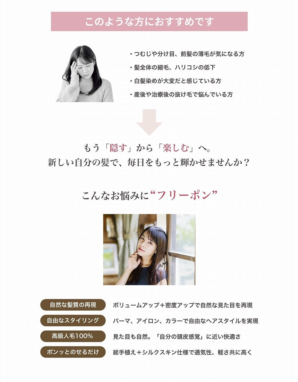 フリーポン ミニ(3×8.5cm|人毛100% 部分ウィッグ)